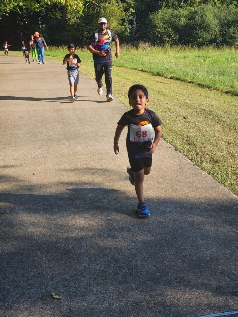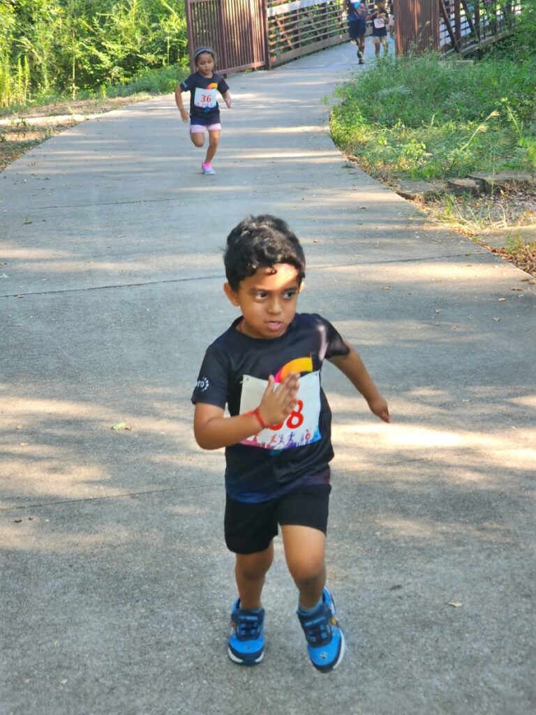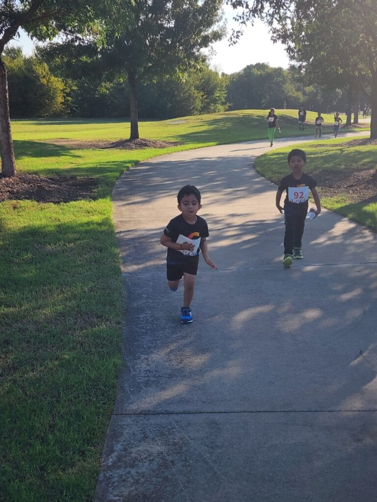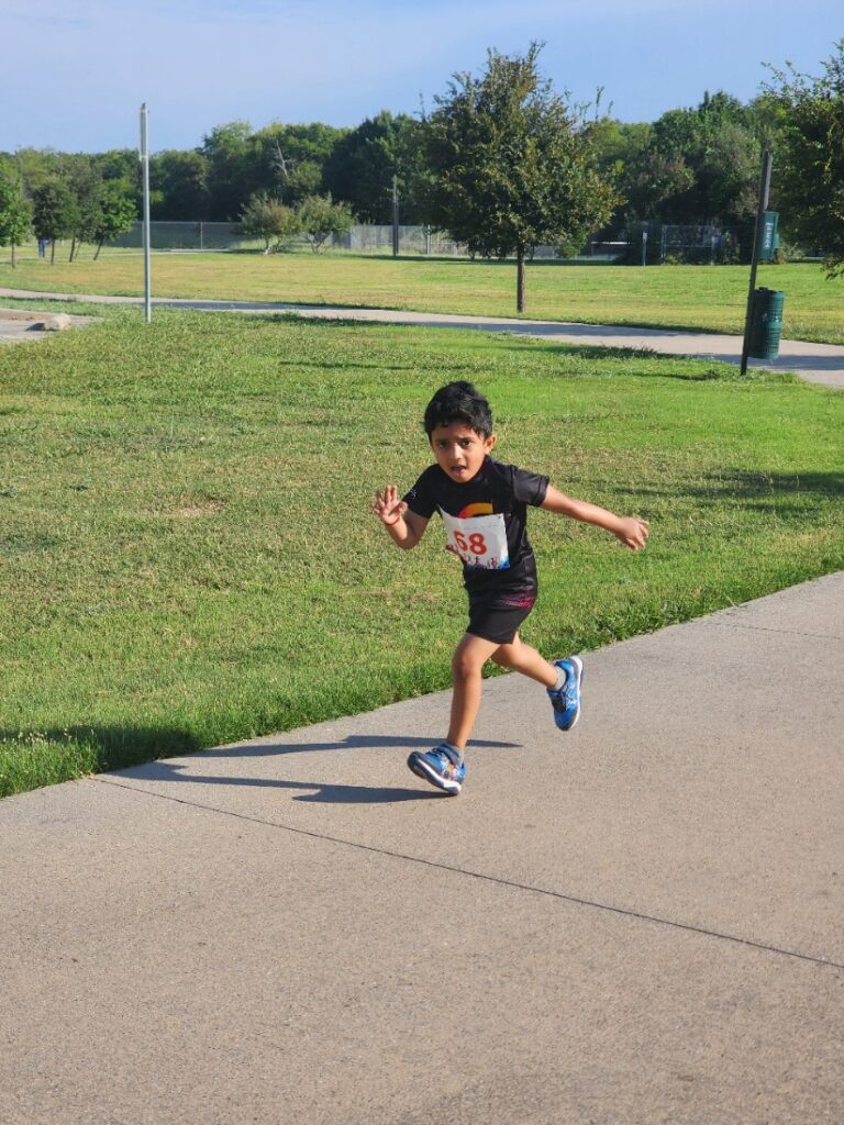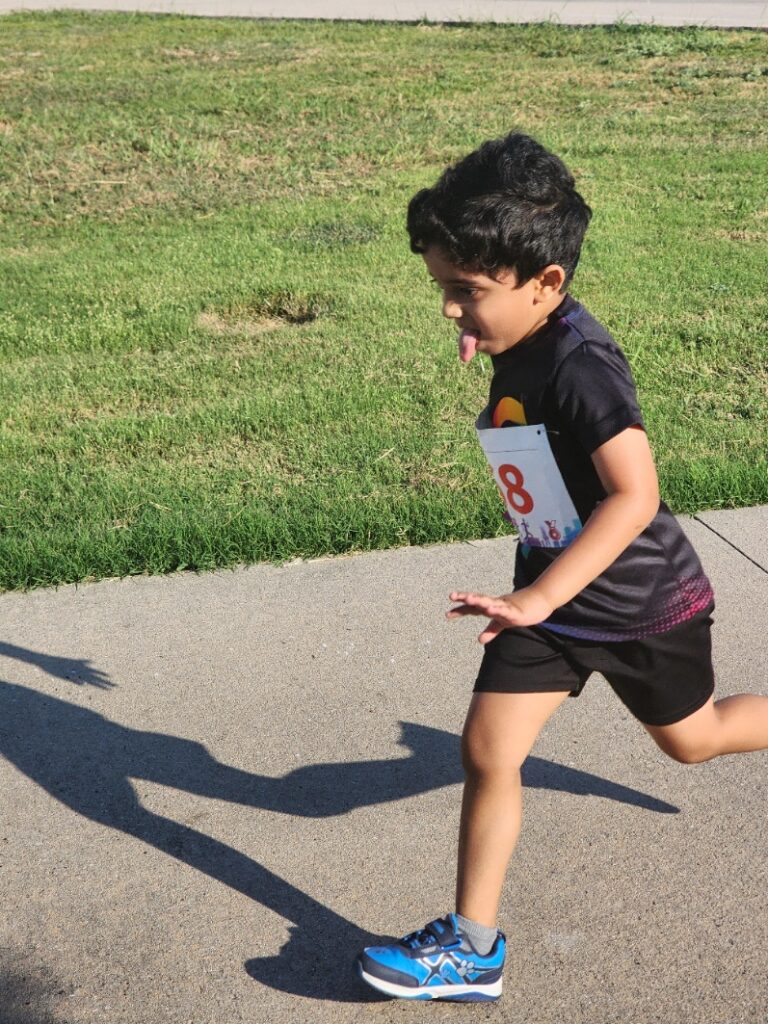 The weather was perfect, the crowd was wonderful, and there were plenty of kids around Ashvik’s age. Best of all, the run took place entirely within the UNT campus, with officers and volunteers stationed along the route to ensure everyone’s safety. That gave me the confidence to let Ashvik run on his own this time; after cheering him through the first 100 meters, I watched from the sidelines.