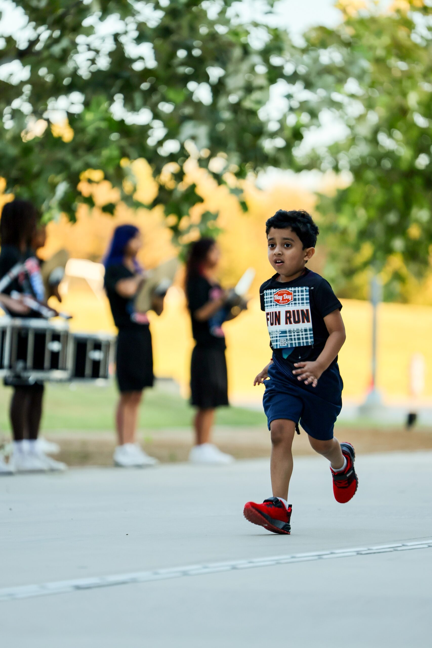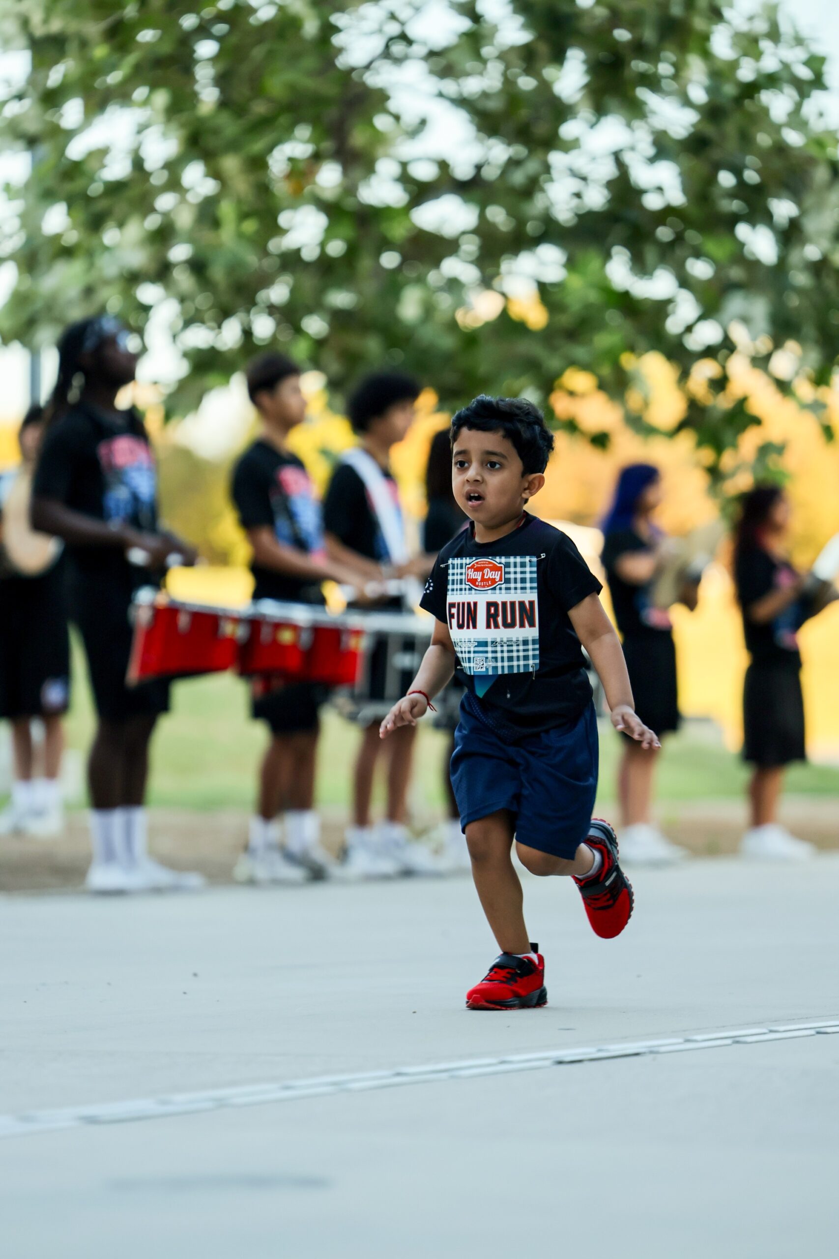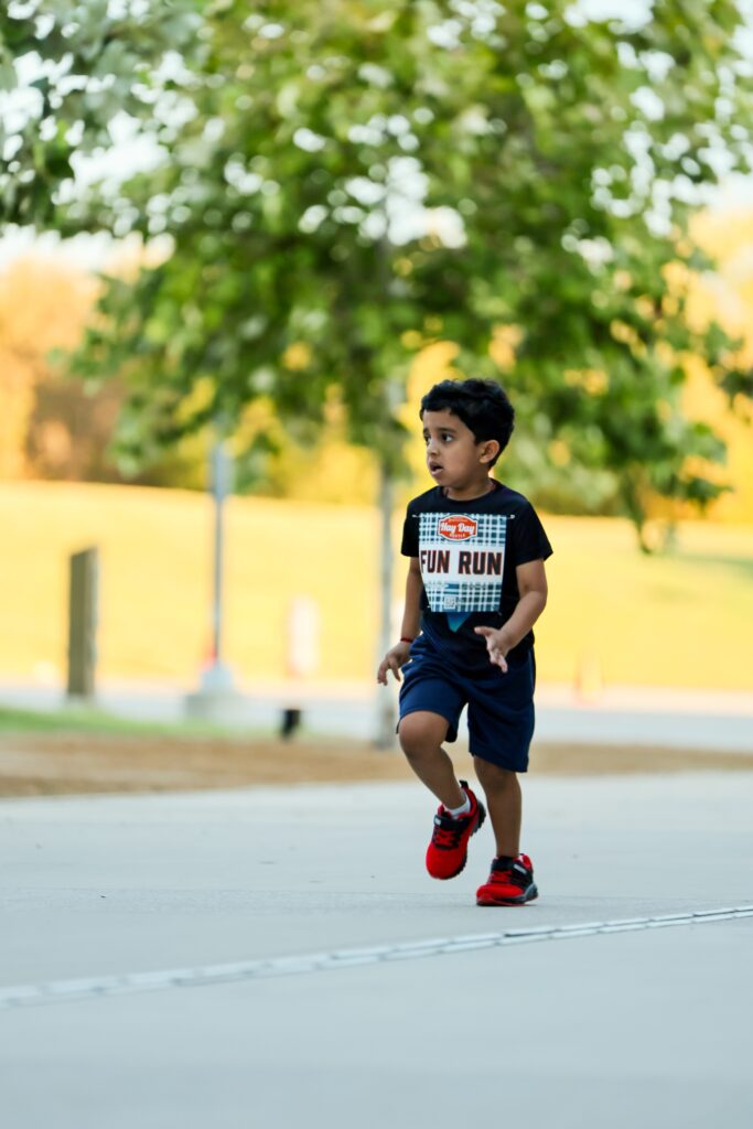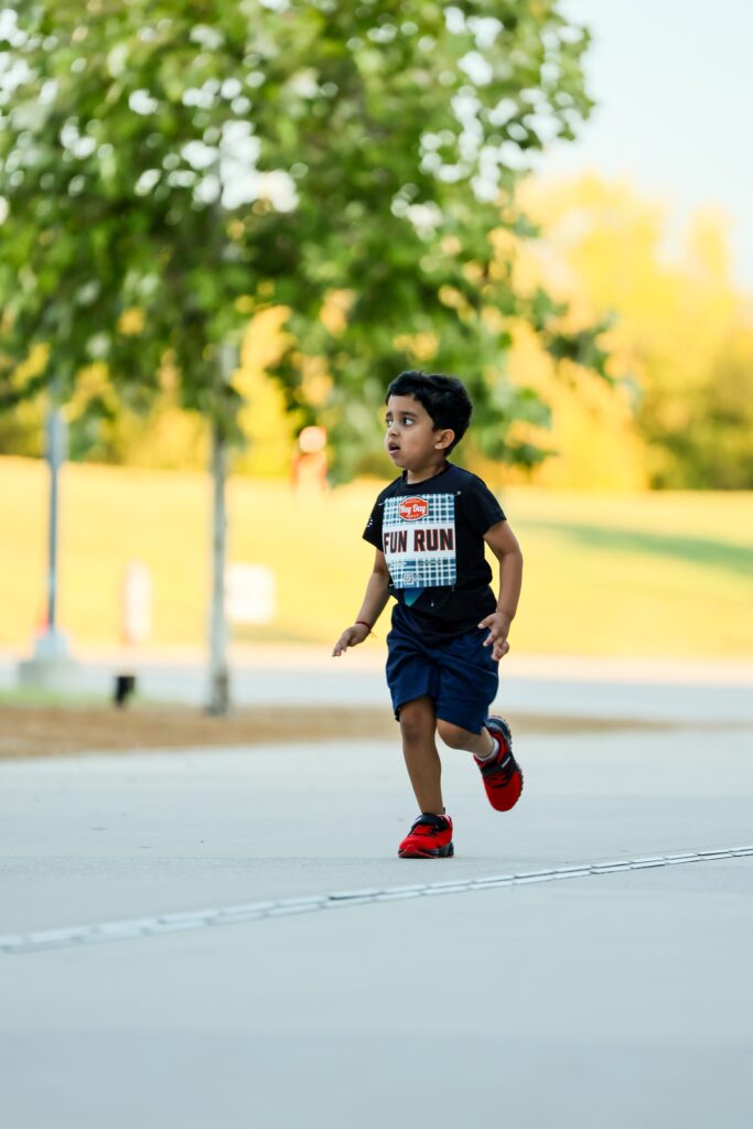 The weather was perfect, the crowd was wonderful, and there were plenty of kids around Ashvik’s age. Best of all, the run took place entirely within the UNT campus, with officers and volunteers stationed along the route to ensure everyone’s safety. That gave me the confidence to let Ashvik run on his own this time; after cheering him through the first 100 meters, I watched from the sidelines.