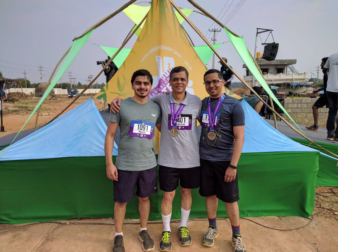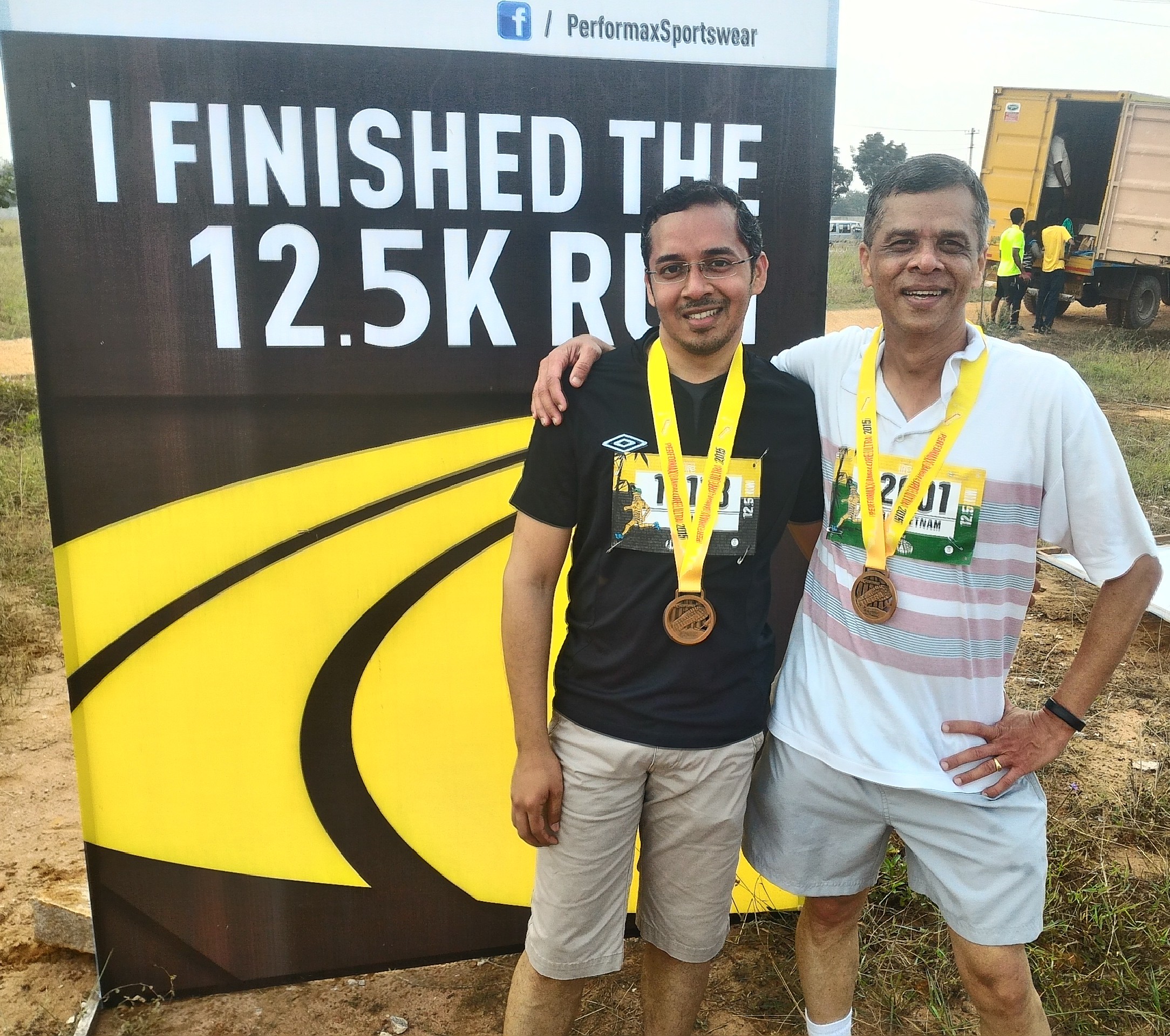 I was pleasantly surprised he completed the full distance in around 15 minutes! He used a walk–run–walk–run rhythm, keeping the walking to a very minimum so he could finish strong. The only disappointment for him? No medal at the finish line! Even I was very disappointed as Wipro made us design medals and stuff.