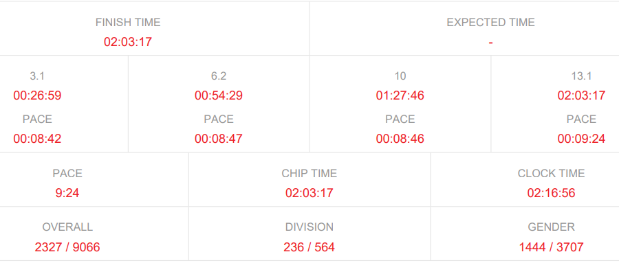 I crossed the finish line with an official time of 1 hour 38 minutes 36 seconds. I know I could have done a lot better, but for an utterly unprepared first attempt, I’m proud!