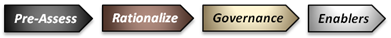 A typical rationalization model with governance component and post rationalization enablers would look as shown in Figure 2. This model is not comprehensive and shows only the most common rationalization scenarios.